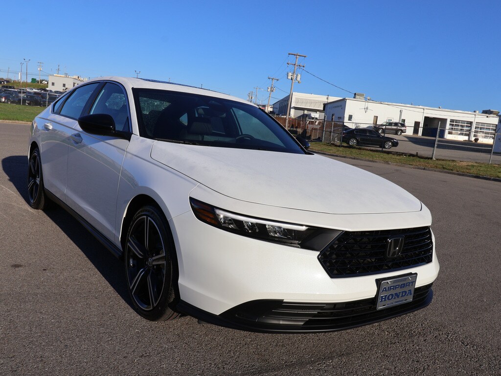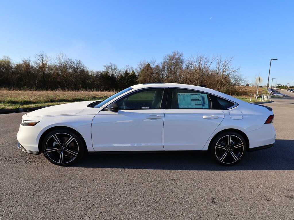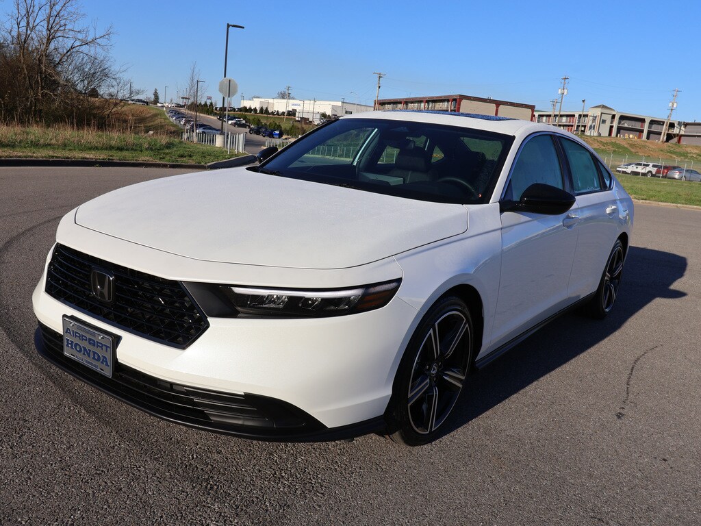 CY2F5SJW - Airport Honda is proud to present you with another True Market Priced New Vehicle. This 2025 Honda Accord Hybrid Sport is loaded with the following Factory Options:2.0L I4 DOHC 16V; 4-Wheel Disc Brakes; 8 Speakers; ABS brakes; Adaptive Cruise Control: Adaptive Cruise Control (ACC) with Low-Speed Follow; Air Conditioning; Alloy wheels; AM/FM radio; Apple CarPlay/Android Auto; Auto High-beam Headlights; Automatic temperature control; Blind Spot Information (BSI) System warning; Brake assist; Bumpers: body-color; Compass; Delay-off headlights; Driver door bin; Driver vanity mirror; Dual front impact airbags; Dual front side impact airbags; Electronic Stability Control; Emergency communication system: HondaLink; Exterior Parking Camera Rear; Fabric Seat Trim; Four wheel independent suspension; Front anti-roll bar; Front Bucket Seats; Front Center Armrest; Front dual zone A/C; Front reading lights; Fully automatic headlights; Heated Front Bucket Seats; Heated front seats; Illuminated entry; Knee airbag; Lane departure: Lane Keeping Assist System (LKAS) active; Leather Shift Knob; Leather steering wheel; Low tire pressure warning; Occupant sensing airbag; Outside temperature display; Overhead airbag; Overhead console; Panic alarm; Passenger door bin; Passenger vanity mirror; Power door mirrors; Power driver seat; Power moonroof; Power steering; Power windows; Radio data system; Radio: 180-Watt Audio System; Rear anti-roll bar; Rear reading lights; Rear seat center armrest; Rear side impact airbag; Rear window defroster; Remote keyless entry; Security system; Speed control; Speed-sensing steering; Speed-Sensitive Wipers; Split folding rear seat; Spoiler; Steering wheel mounted audio controls; Telescoping steering wheel; Tilt steering wheel; Traction control; Trip computer; Variably intermittent wipers; and Wheels: 19 x 8.5J Berlina Black. 2.0L I4 DOHC 16V. White 2025 Honda Accord Hybrid Sport 4D Sedan FWD 2.0L I4 DOHC 16V eCVT